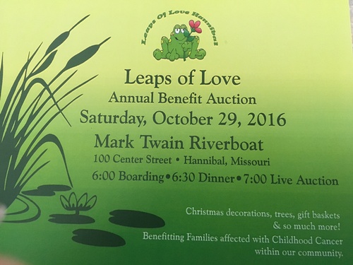 Please plan on attending the annual Leaps of Love Benefit Auction. This program has continued year after year to provide benefits to families affected with Childhood Cancer in our community. The event includes dinner and a live auction of Christmas decorations, trees, gift baskets, and much more!